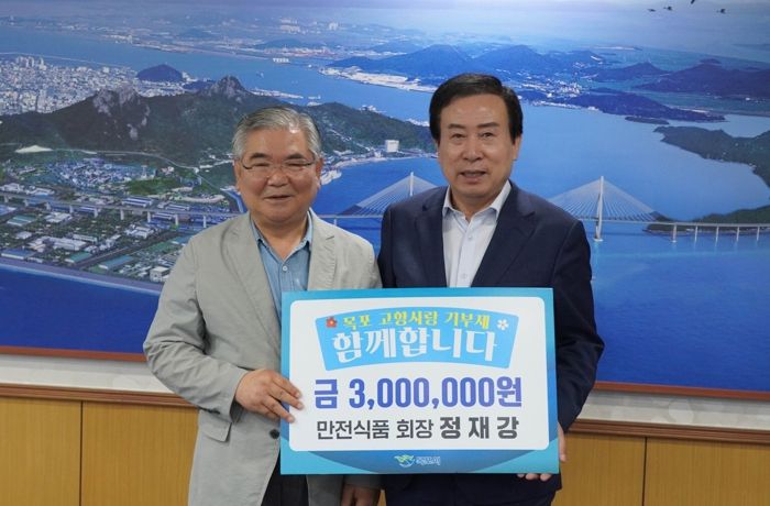 [제주교통복지신문 김강석 기자] 목포시는 만전식품 정재강 회장이 고향사랑기부금 300만원을 기탁했다고 3일 밝혔다.