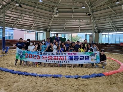 ‘찾아가는 씨름 교실’은 지난 6월 30일 구례공설운동장에서 용방초 3~4학년 학생 19명을 대상으로 진행됐으며, 구례군 반달곰스포츠클럽도 함께 참여했다.
