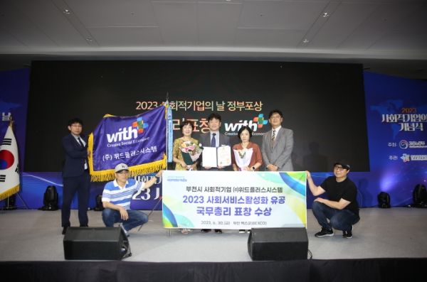 ㈜위드플러스시스템은 기획재정부가 시상하는 사회서비스활성화 부문에서 전체 고용인원의 90%를 취약계층으로 고용하고, 꾸준한 지역사회 공헌 활동을 펼친 공로를 인정받았다.