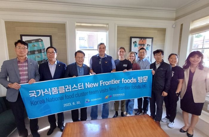 국가식품클러스터 방문단은 뉴프론티어푸드를 방문해 이신형·Rober MOCK 공동 대표 등 관계자를 만나 미국 등 해외시장 개척을 위한 제품 현지화 노하우와 USDA 유기농 인증, 비건 인증 제품 OEM 생산·판매 가능한 기업 발굴 등 수출과 관련한 협의를 진행했다.