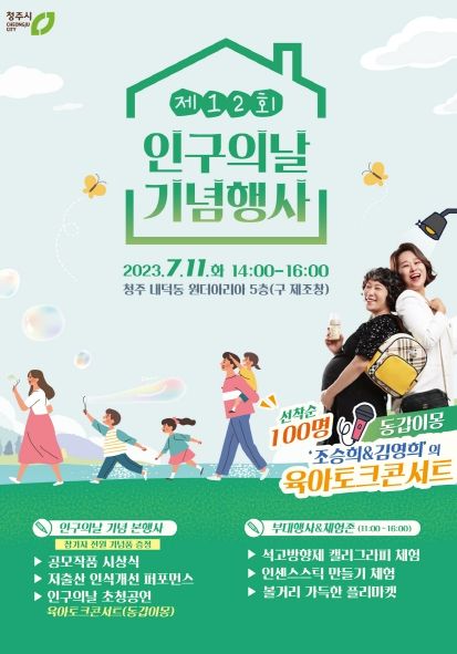 [제주교통복지신문 김강석 기자] 청주시는 오는 7월 11일 오후 2시 문화제조창 일원에서 ‘제12회 인구의 날 기념행사’를 개최한다고 밝혔다.