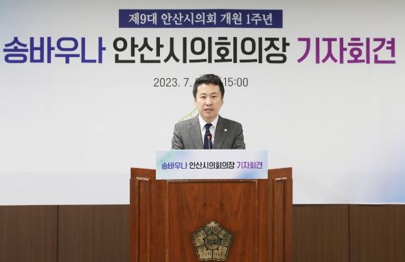 [제주교통복지신문 김강석 기자] 안산시의회 송바우나 의장이 3일 제9대 의회 개원 1주년 기자회견을 열어 “특별한 꿈이 없어도 시민들이 살만한 가치가 있다고 느끼며 약자라는 이유로 소외당하거나 차별받지 않는 지역공동체를 형성하는 데에 앞장서겠다”고 다짐했다.