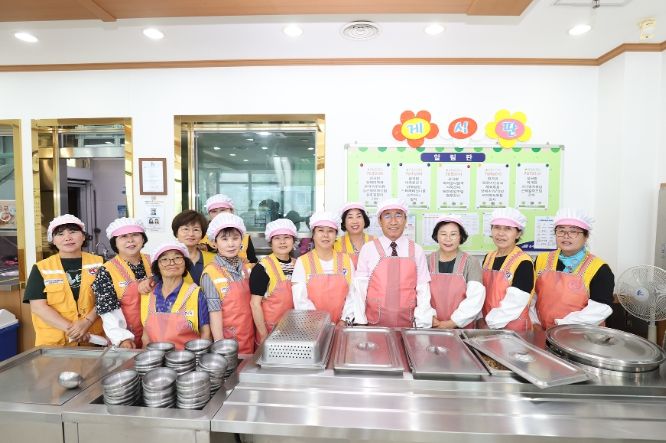 배식 후에는 어르신들과 어울려 식사하며 생활 불편 사항 청취하고는 충주댐노인복지관 직원과 자원봉사자들을 격려했다.