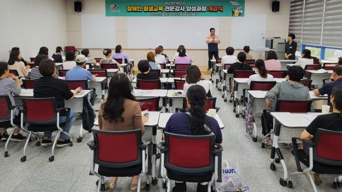 시에 따르면 장애인 평생교육 전문강사 양성과정은 장애유형별 특성에 적합한 평생교육 프로그램을 지도할 수 있는 전문인력을 양성하는 프로그램으로, 관내 평생교육 강사, 일반시민 50여 명을 대상으로 8월 10일까지 총 12회에 걸쳐 진행된다.