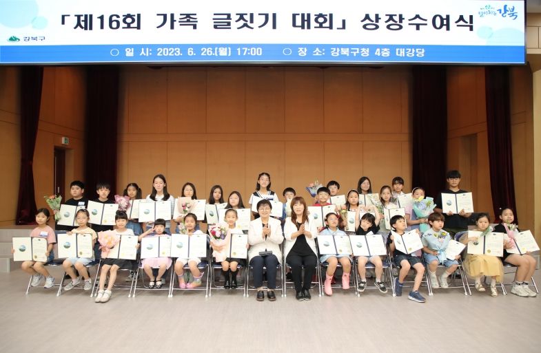 강북구가 전국 초등학생 대상으로 개최해온 이 대회는 올해 16회를 맞았다. 구는 지난달 20일 북서울의꿈 광장에서 본대회를 개최하고 지난 26일 구청 대강당에서 상장수여식을 열었다.