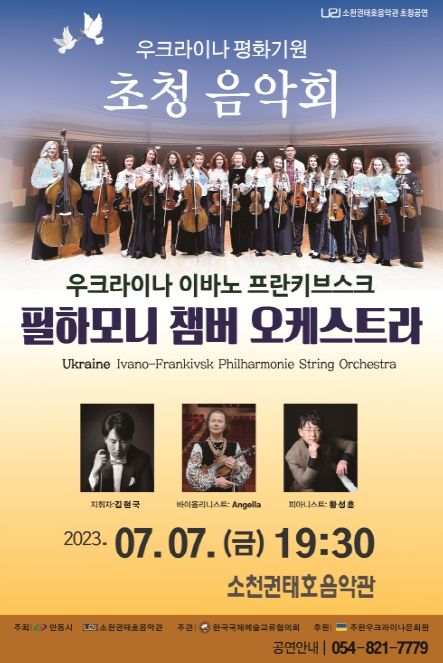[제주교통복지신문 김강석 기자] 소천권태호음악관에서 7월 7일(19시 30분) 음악관 강당(지하1층)에서“우크라이나 이바노 프란키브스크 필하모니 챔버오케스트라”초청음악회을 개최한다.