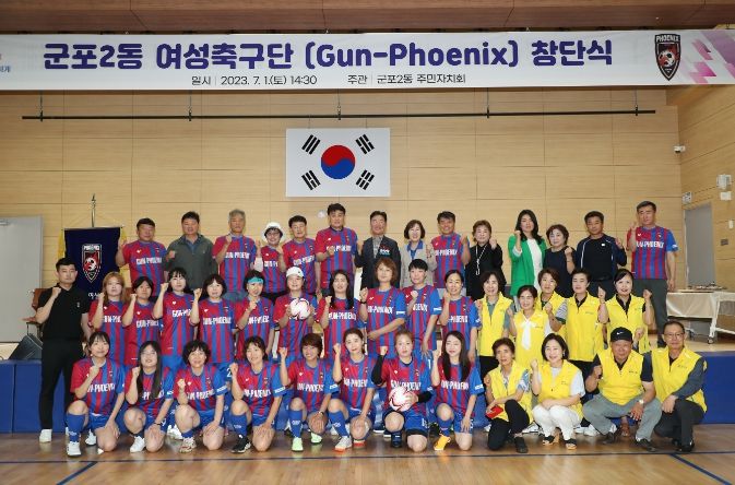 [제주교통복지신문 김강석 기자] 군포2동 주민자치회는 지난 1일 국민체육센터 다목적체육관에서 여성축구단(군-포이닉스) 창단식을 개최하고 군포시 여성 축구의 새로운 도약을 알렸다.