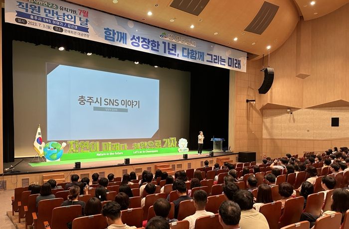 지난 3일 청양문예회관 대공연장에서 300여 직원들이 ‘충주시 홍보맨’으로 불리며 행정안전부 정부혁신 강사로 활동하고 있는 김선태 주무관을 초청해 ‘충주시 사회관계망서비스(SNS) 이야기’ 강의를 들은 것도 그 일환이다.