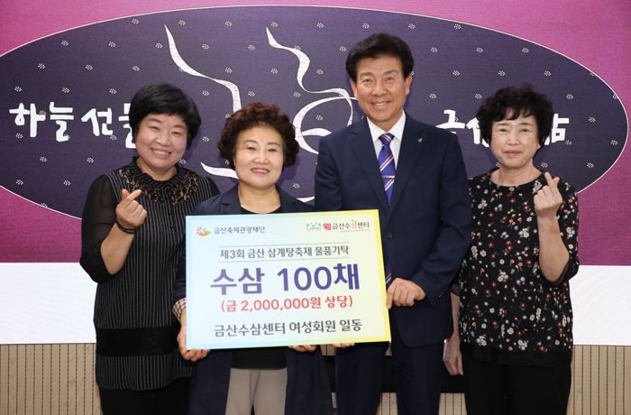 [제주교통복지신문 김강석 기자] 금산수삼센터여성회는 지난 3일 제3회 금산삼계탕축제 성공 기원을 위해 200만 원 상당 수삼 100채를 기탁했다.