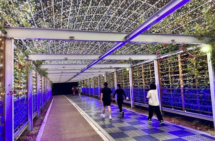공단은 코로나19 사회적 거리두기 전면 해제 이후 산책로 이용객이 증가함에 따라 ‘도심 속 힐링 공간’ 조성을 위해 기존 장미터널에 LED 은하수 전구를 설치했다.