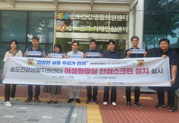 [제주교통복지신문 김강석 기자] 인천시 연수구시설안전관리공단은 3일 연수경찰서 생활안전과(범죄예방진단팀, 여성청소년과)합동 불법촬영을 방지하고자 송도건강생활지원센터 1~2층 여성화장실에 안심스크린을 설치했다고 밝혔다.