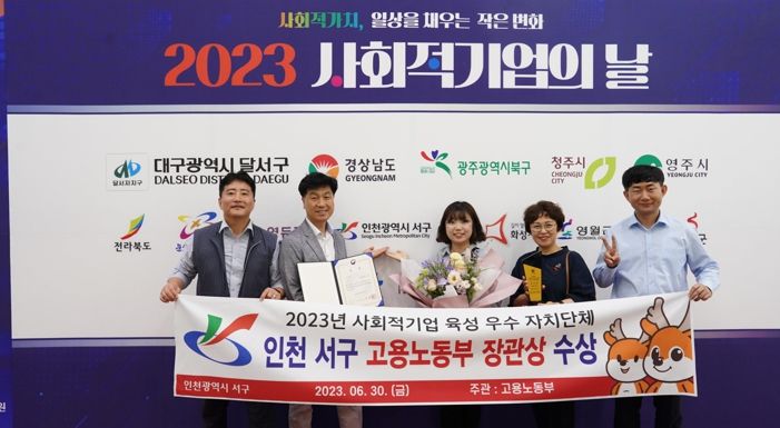 [제주교통복지신문 김강석 기자] 인천 서구가 지난달 30일 부산 벡스코에서 열린 사회적기업의 날 기념식에서 사회적기업 육성 우수 자치단체로 선정돼 고용노동부 장관상을 받았다고 4일 밝혔다.