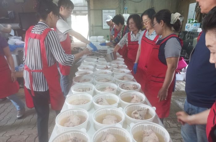 이날 열린 봉사에는 서구의회 고선의 의장을 비롯해 주민자치회 위원 등이 참석해 직접 삼계탕과 밑반찬을 만들어 이웃과 나눴다.