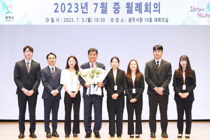 [제주교통복지신문 김강석 기자] 광주시가 3일 시청 대회의실에서 7월 월례회의를 개최했다. 7월 월례회의는 유공표창 시상, 방세환 시장 취임 1주년 기념 꽃다발 전달식 등으로 진행됐다.