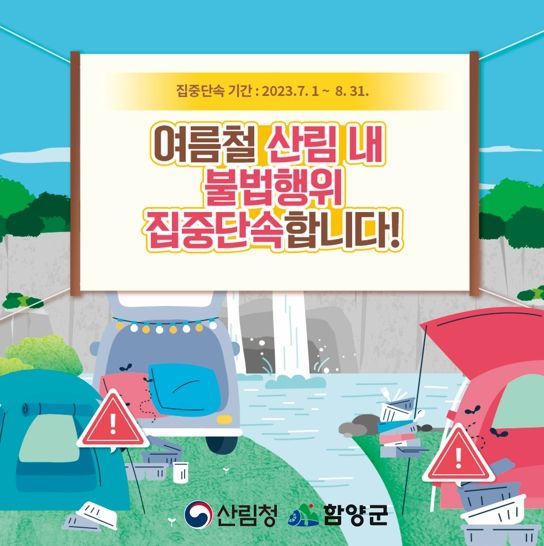 [제주교통복지신문 김강석 기자] 함양군이 여름철 산간 계곡 이용객이 증가할 것으로 예상됨에 따라 7월1일부터 8월31일까지를 산림 내 불법행위 집중단속 기간으로 정하고 특별단속을 실시한다.