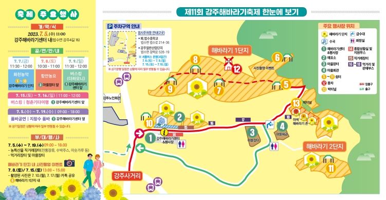 [제주교통복지신문 김강석 기자] 함안군 법수면 강주마을 일원에서 오는 7월 5일부터 19일까지 15일간 제11회 강주해바라기 축제가 열린다.