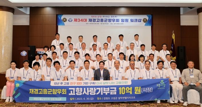군에 따르면 재경고흥군향우회는 지난 6월 30일 강원도 고성군에서 개최된 임원워크숍에서 고향 발전을 위해 고향사랑기부금 10억원 약정 행사를 가졌다.