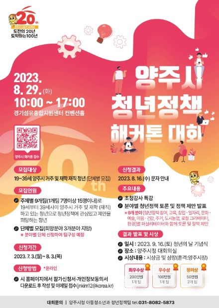 [제주교통복지신문 김강석 기자] 양주시는 오는 8월 3일까지 ‘2023 청년정책 해커톤 대회’에 참여할 단체를 모집한다.