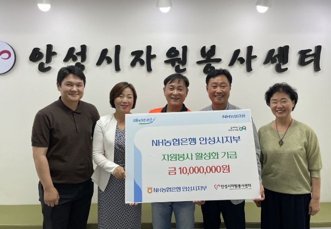 [제주교통복지신문 김강석 기자] NH농협은행 안성시지부가 지역사회 자원봉사 활성화 기금 일천만 원을 안성시자원봉사센터에 기탁해 지난 7월 3일 전달식을 진행했다.