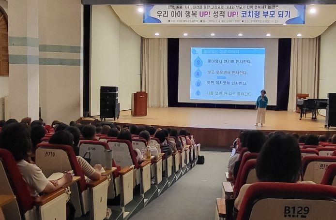 [제주교통복지신문 김강석 기자] 평택교육지원청은 7월 4일 평택대학교 음악당에서 ‘인정, 존중, 지지, 칭찬을 통한 코칭으로 자녀와 부모가 모두 행복해지는 학부모 인성교육 역량 강화 연수’를 진행하여 유, 초, 중, 고 학부모 350명가량이 참석했다.