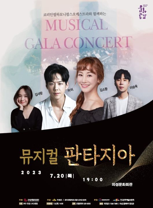 [제주교통복지신문 김강석 기자] 의성군은 코리안필하모니팝스오케스트라와 함께하는 뮤지컬 갈라콘서트 '뮤지컬 판타지아'를 7월 20일 오후 7시, 의성문화회관에서 개최한다고 밝혔다.