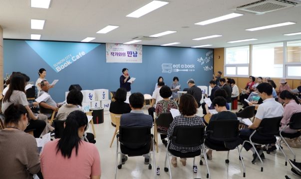 이날 권선구청 3층 북카페에서는 한국문인협회 수원지부 정명희 회장을 비롯해 전시에 참여한 작가들과 회원들, 권선구청 공직자가 아늑한 분위기 속에 작가와의 만남 시간을 가졌다.