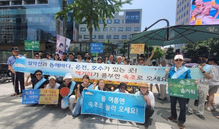 이날 행사에는 폭염의 날씨에도 불구하고 재경속초시민회원 20여명이 참여하여 ‘올 여름엔 속초로 놀러 오세요’, ‘속초는 언제나 즐거워’라고 새겨진 현수막과 피켓, 어깨띠를 두르고 속초의 먹거리, 관광명소, 여름축제 등을 홍보하며 속초알리기에 구슬땀을 흘렸다.