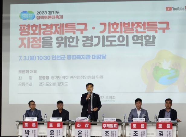 [제주교통복지신문 김강석 기자] 경기도의회 안전행정위원회 윤종영 의원(국민의힘, 연천)은 3일 연천군 종합복지관 대강당에서 평화경제특구·기회발전특구 지정 방안 모색을 위한 토론회를 개최했다.