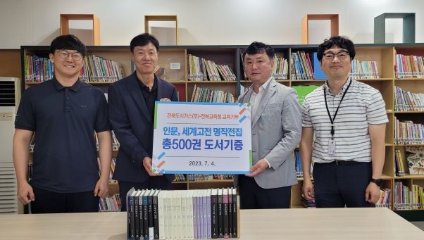 전북도시가스(주)는 지역미래양성을 위해 장학금 증정과 배움나눔터 운영을 통한 사회공헌활동을 지속적으로 이어가고 있으며, 이날 도서기증도 그 일환이다.