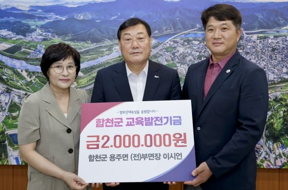 [제주교통복지신문 김강석 기자] 합천군 용주면 이시언 前부면장은 금년 6월 30일자로 공직을 퇴임하면서 4일 (사)합천군교육발전위원회를 방문해 교육발전기금 200만원을 전달했다.