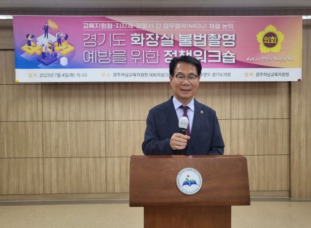 [제주교통복지신문 김강석 기자] 경기도의회 교육기획위원회 유영두 의원(국민의힘, 광주1)은 7월 4일 광주하남교육지원청에서 ‘화장실 불법촬영 예방을 위한 정책 워크숍’을 성황리에 개최했다.