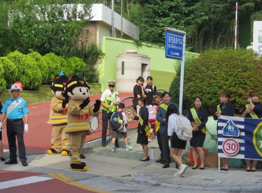캠페인 참여자들은 차량 통행이 많은 교문 앞 횡단보도에서 교통지도를 진행했고, 또한 교통안전 문화 의식을 알리기 위해 현수막과 피켓을 활용하여 홍보하며 등굣길 학생들에게 교통안전 물품을 배포했다.