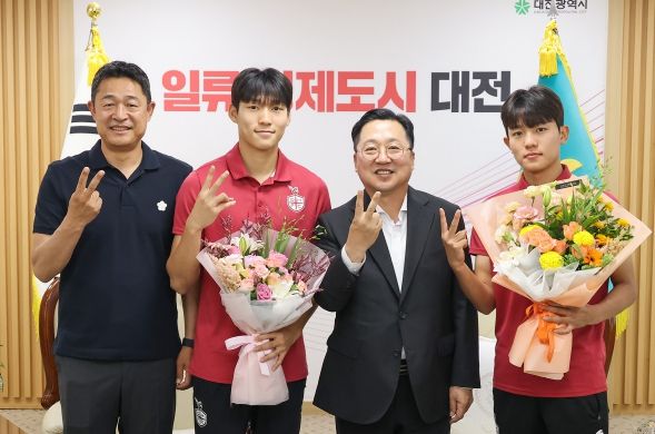 이 시장은 "배준호, 배서준 선수는 뛰어난 경기력과 팀워크로 대전시민들에게 감동과 자부심을 선사했다. 대전하나시티즌에 복귀해서도 멋진 활약을 펼쳐달라“고 당부했다.