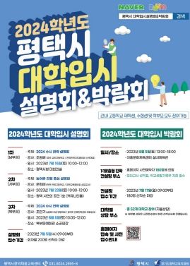 [제주교통복지신문 김강석 기자] 평택시는 수험생과 학부모들에게 최신입시 정보 제공을 위한 2024학년도 '대학입시설명회 및 박람회'를 개최한다.