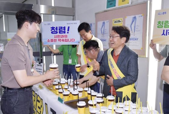 이날 캠페인에는 강기정 시장, 이갑재 감사위원장 등이 참여해 점심시간 구내식당을 이용하는 직원들에게 커피·매실차 등을 나눠주며, 공익신고자 보호제도와 갑질·금품수수 등 부패행위 신고방법을 홍보했다.