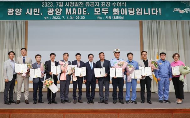 이날 수여식에는 2023년 상반기 모범 이통장으로 △광양읍 이형화 이장 △옥룡면 박준순 이장 △진상면 우평호 이장 △태인동 송재승 통장이 선정되어 '올해의 모범 이통장' 패를 수여받았다.