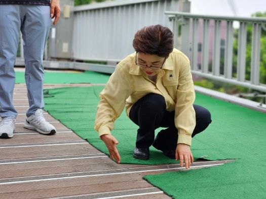 [제주교통복지신문 김강석 기자] 양천구의회 임정옥 의원(더불어민주당, 신정6·7동)이 장마철을 대비하여 4일 오전, 양천구청 관계자 및 주민과 함께 신정차량기지 보도 육교 현장 점검을 실시했다.