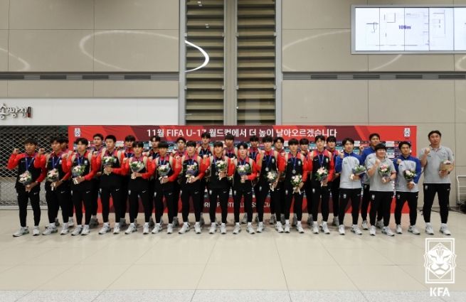 변성환 감독이 이끄는 U-17 대표팀은 4일 오전 인천국제공항을 통해 귀국했다. 이른 시간임에도 불구하고 공항을 찾은 수십 명의 팬들은 은메달을 목에 걸고 입국장에 모습을 드러낸 변성환 감독과 23명의 선수를 향해 박수와 환호를 보냈다.
