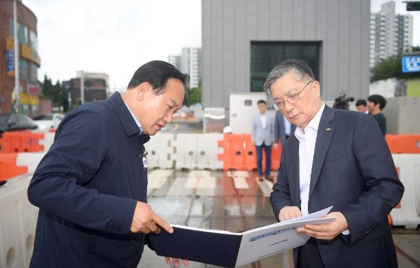 이날 이권재 시장과 이한준 사장은 광역교통개선대책 사업 중 하나인 오산시청 동부대로 고속화 사업 현장을 함께 방문했다.