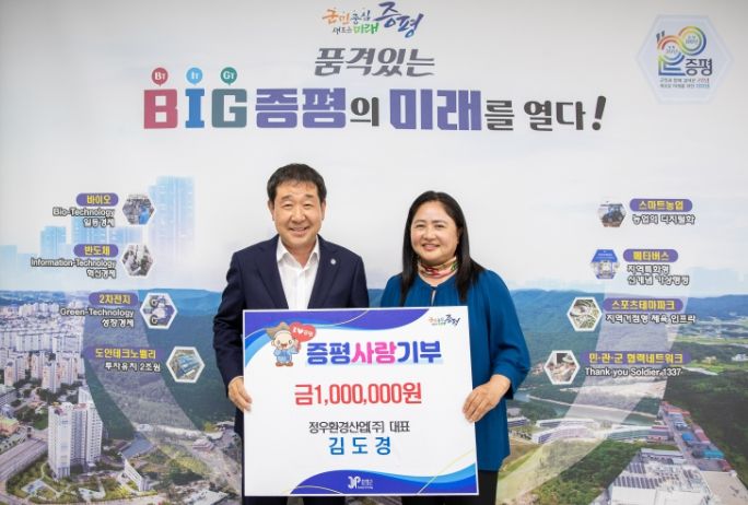 [제주교통복지신문 김강석 기자] 정우환경산업(주) 김도경 대표가 또 한 번 증평군에 고향사랑기부금 100만원을 기탁했다.