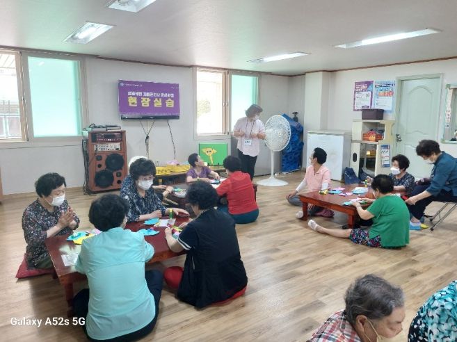 현장실습을 위해 배방자이1차아파트·용화아이파크·방현2리·경남아너스빌(대아)·풍기주은아파트 5개 경로당을 방문한 교육생 18명은 어르신을 대상으로 △실버인지 미술프로그램 △실버인지 학습프로그램 △실버인지 활동프로그램 △실버보드 게임을 진행했다.