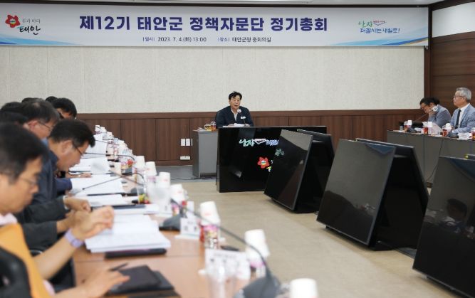 군은 지난 4일 군청 중회의실에서 가세로 군수와 부서장, 정책자문단 등 50여 명이 참석한 가운데 ‘제12기 태안군 정책자문단 정기총회’를 열고 자문단이 제시한 각종 정책제안에 대한 논의에 나섰다고 밝혔다.