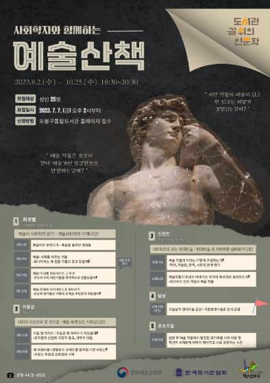 학마을도서관은 ‘사회학자와 함께 하는 예술 산책’을 주제로 예술사회학의 이해를 위한 다채로운 인문학 특강과 탐방 프로그램을 운영할 예정이다.