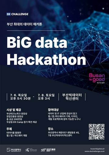 '빅(Big-Busan is Good) 데이터 해커톤'은 부산시가 데이터 관련 전문 인재 발굴과 창업기업(스타트업) 육성을 위해 부산테크노파크와 함께 올해 처음으로 개최한다.