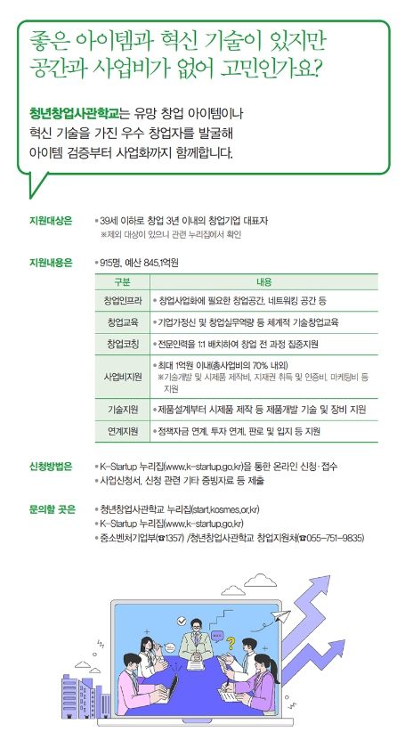 · 중소벤처기업부(☎1357) /청년창업사관학교 창업지원처(☎055-751-9835)