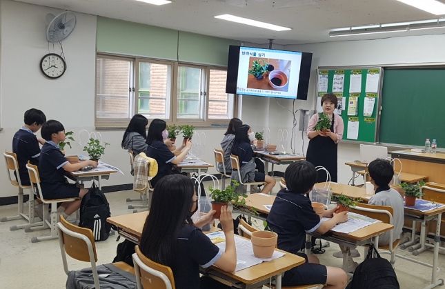 지난 6월 1일 첫 교육을 했고, 7월 12일까지 총 7개 학교 중학생 280여 명을 대상으로 탑동시민농장과 교육을 신청한 중학교에서 교육을 진행한다.