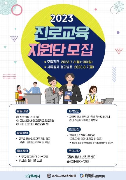 시 관계자는 “진로교육지원단이 고양시 청소년을 보다 촘촘하게 지원하는 역할을 맡을 것”이라고 전했다.