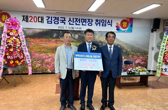 7월 1일 자 인사발령으로 신전면장에 부임한 김경국 면장은 감사의 마음과 지역의 어려운 이웃을 위한 사랑의 마음을 담아 후원금 1백만 원을 기부하게 됐다고 밝혔다.