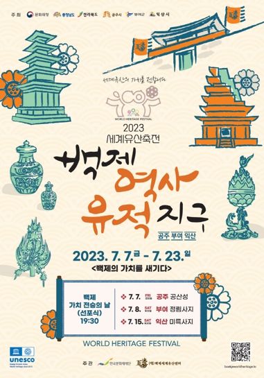 [제주교통복지신문 김강석 기자] 공주시는 ‘2023 세계유산축전’이 오는 7일부터 23일까지 17일간 유네스코 세계유산에 등재된 백제역사유적지구에서 열린다고 5일 밝혔다.