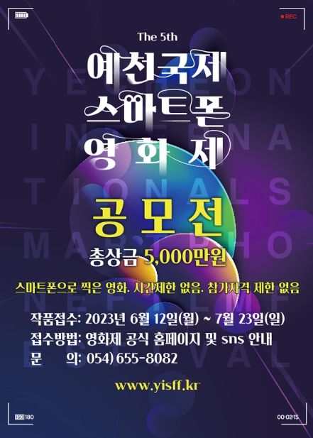 [제주교통복지신문 김강석 기자] 예천국제스마트폰영화제 조직위원회는 이달 23일까지 ‘제5회 예천국제스마트폰영화제’ 작품 공모를 접수한다.